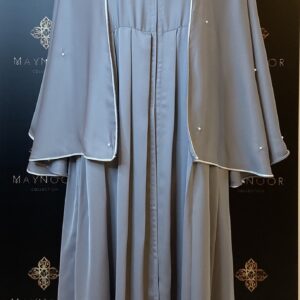 Nude linen abaya with crystal rhinestones leaves . This beautiful abaya is handmade and comes with a matching (head)scarf