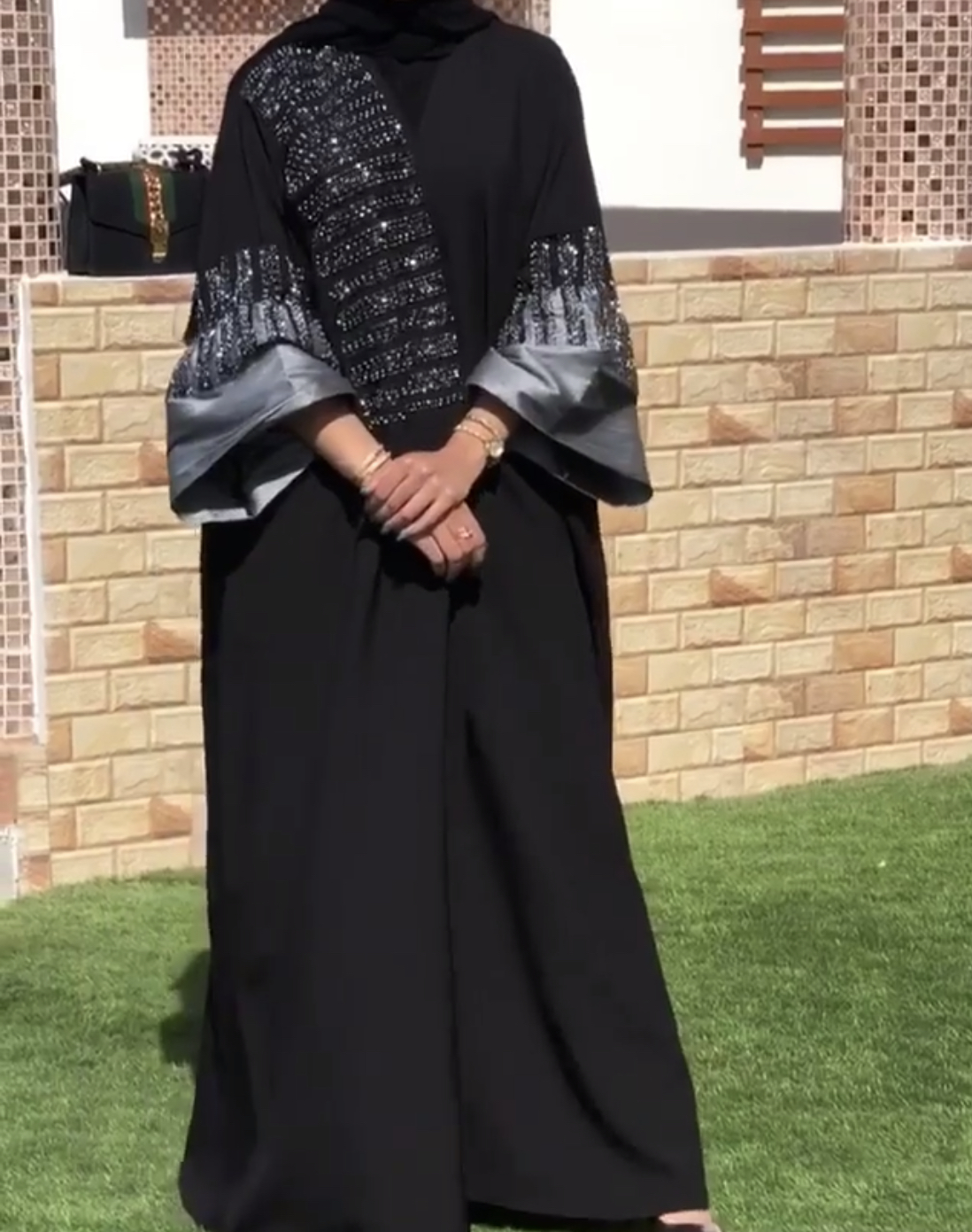 This silver arm abaya is a bit heavy, because of all the crystals stones that are hand carfefully sewed,